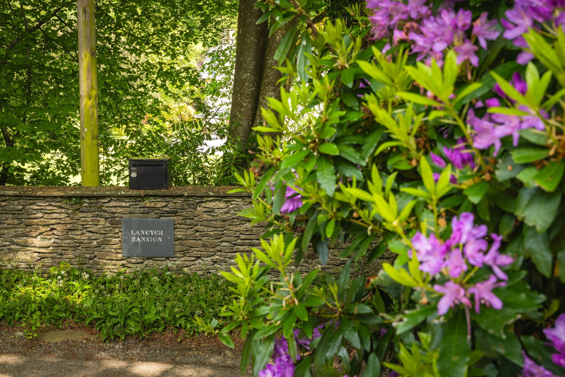 Lancych Mansion sits in approximately fifteen acres of grounds that run along the bottom of the Cych Valley. The quiet country lane that allows access to the mansion forms the southern boundary with the twisting river Cych running along the northern boundary which is classed as a Site of Scientific Interest (SSI). A stone pillared entrance leads to a sweeping driveway curving down to the large tarmac parking area in front of the mansion. The land also includes a large island in the middle of the river with the winding course of the waterway providing an ideal place to walk, swim, fish, or simply observe the myriad of wildlife that calls the valley home.