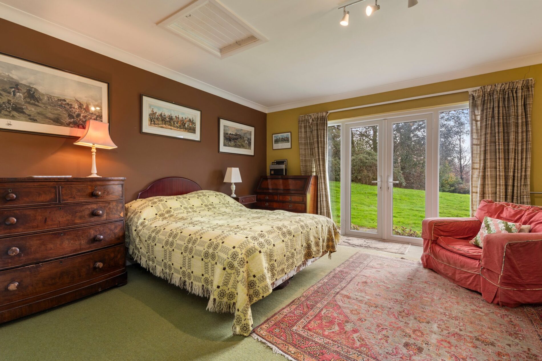 A well-proportioned double bedroom with a large window overlooking the grounds. The room includes a built-in wardrobe and a private en-suite, combining comfort with practicality.