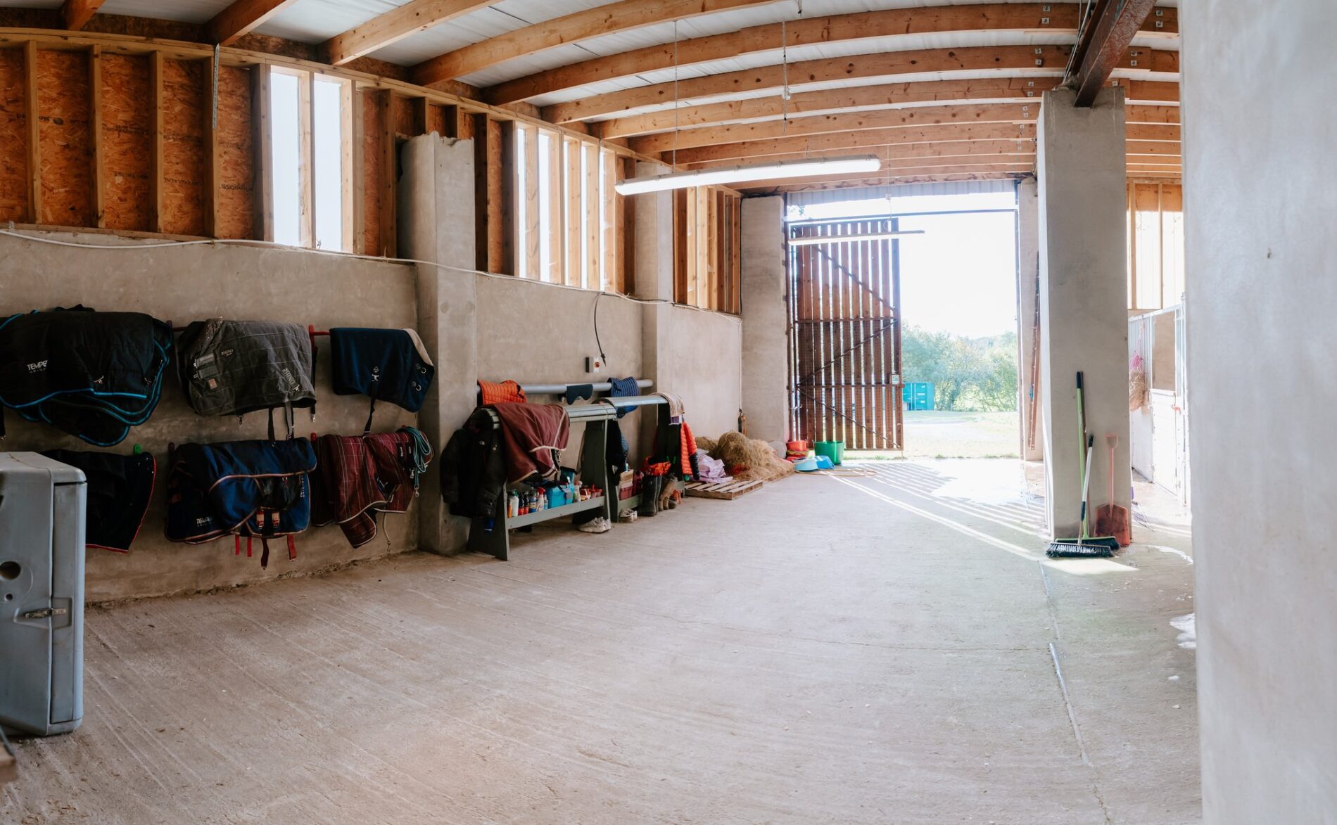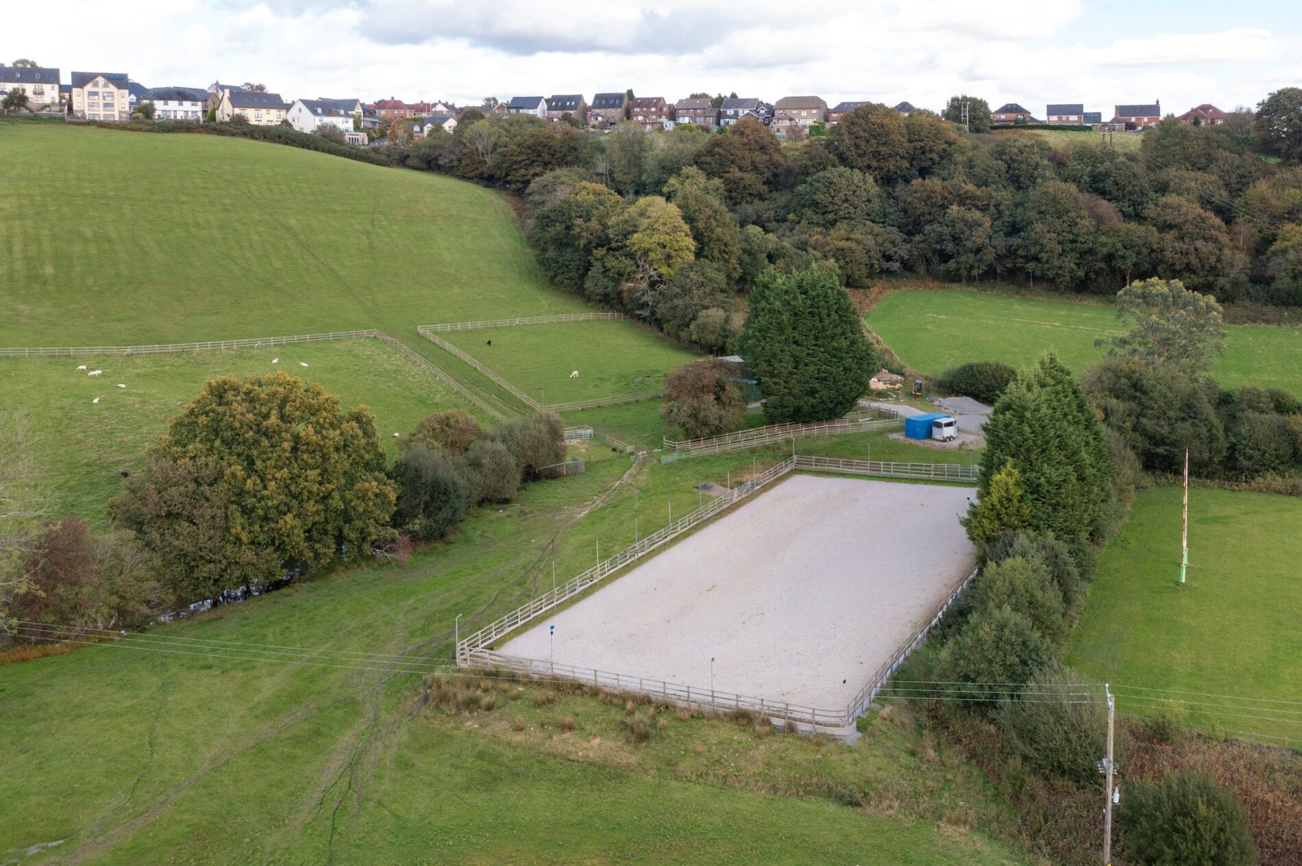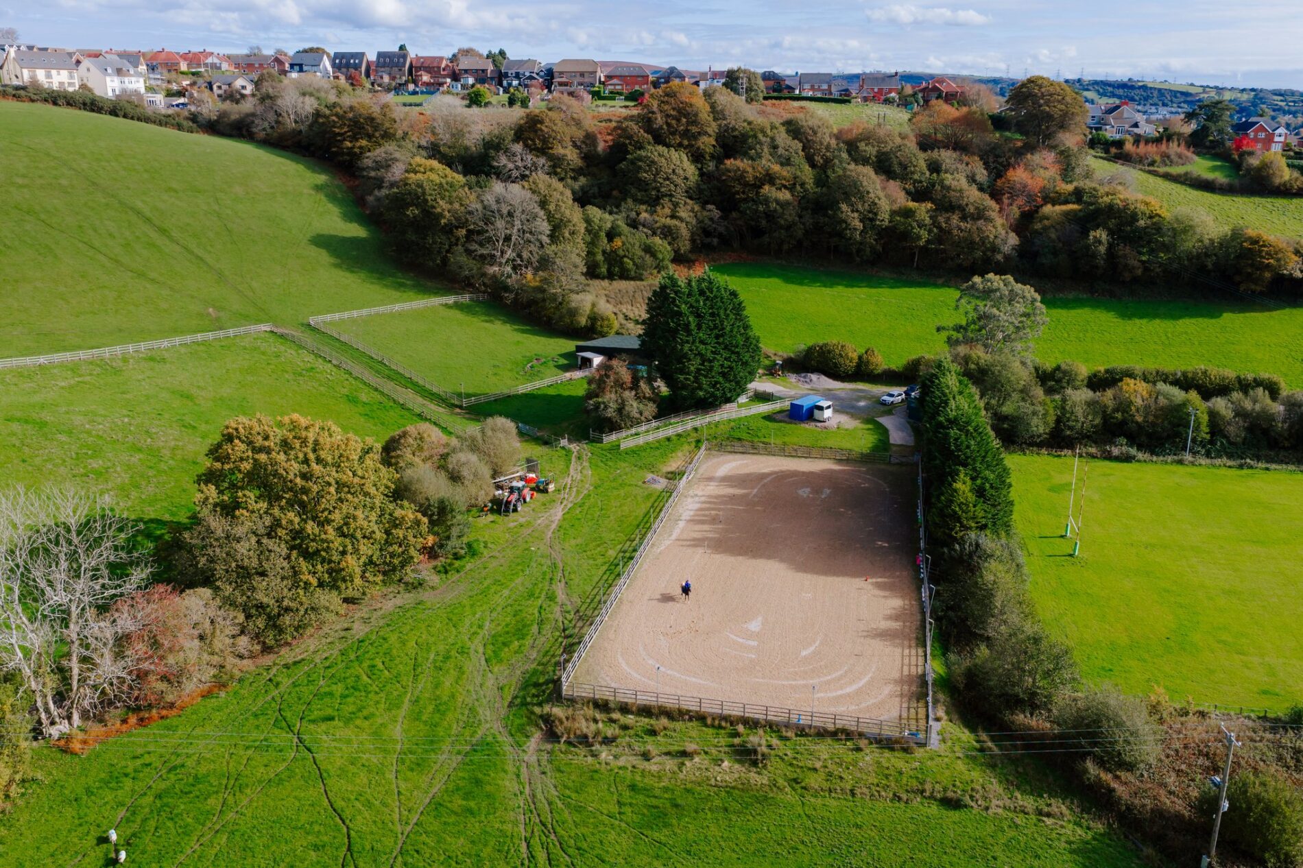 Beyond the immediate gardens the land gently slopes away from the main residence and opens up to reveal a series of four fenced paddocks, positioned adjacent to the well-appointed equestrian facilities. These facilities currently accommodate stabling for four horses, with the potential to expand if required, and include a spacious manège that is suitable for training and riding. A separate vehicle entrance leads directly to the stable yard, ensuring ease of access without disturbing the main residence. Additional covered storage areas are provided, offering practical solutions for equipment and feed.