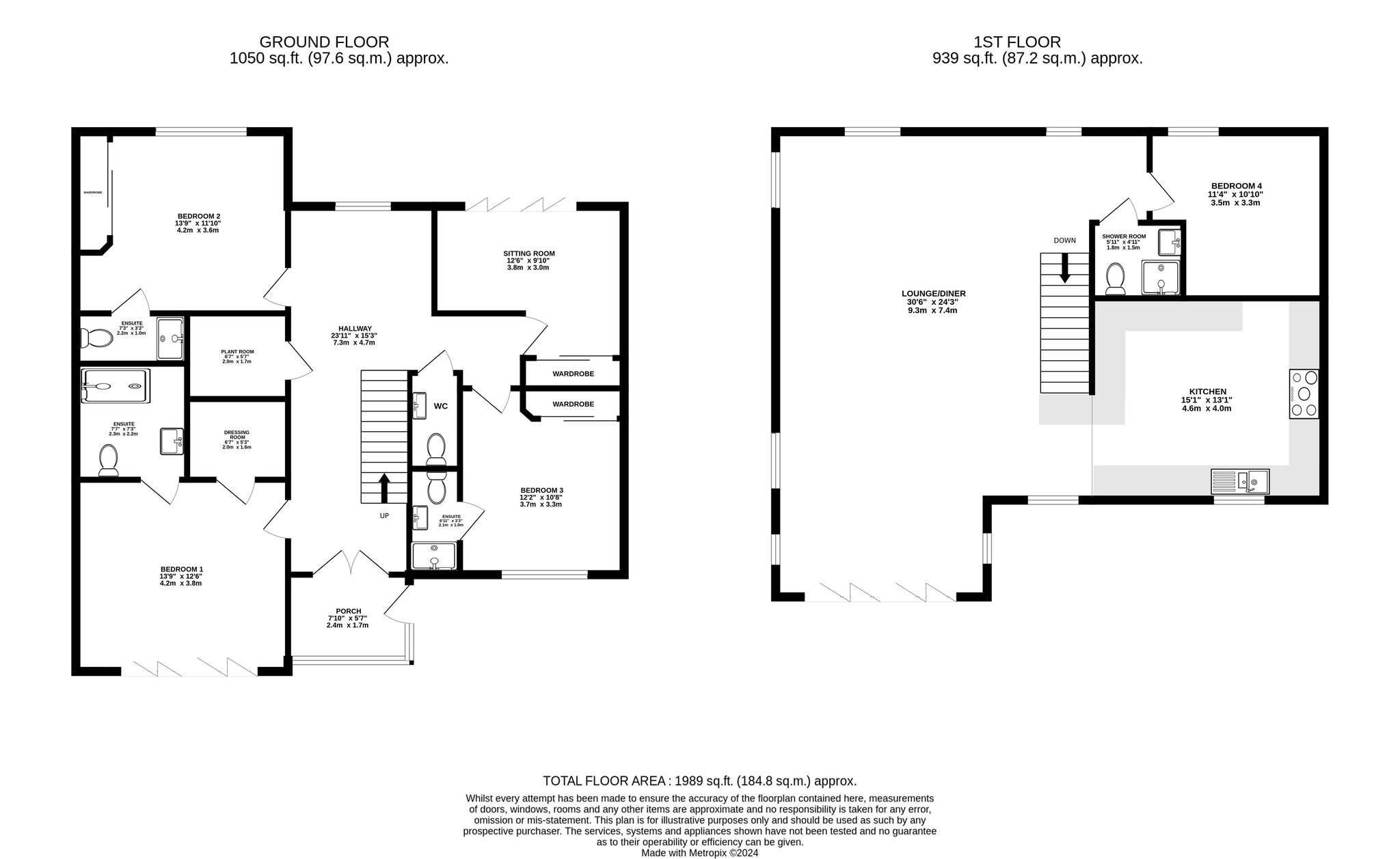 The dressing room offers a great storage space, with a range of built in cupboards on the rear wall.