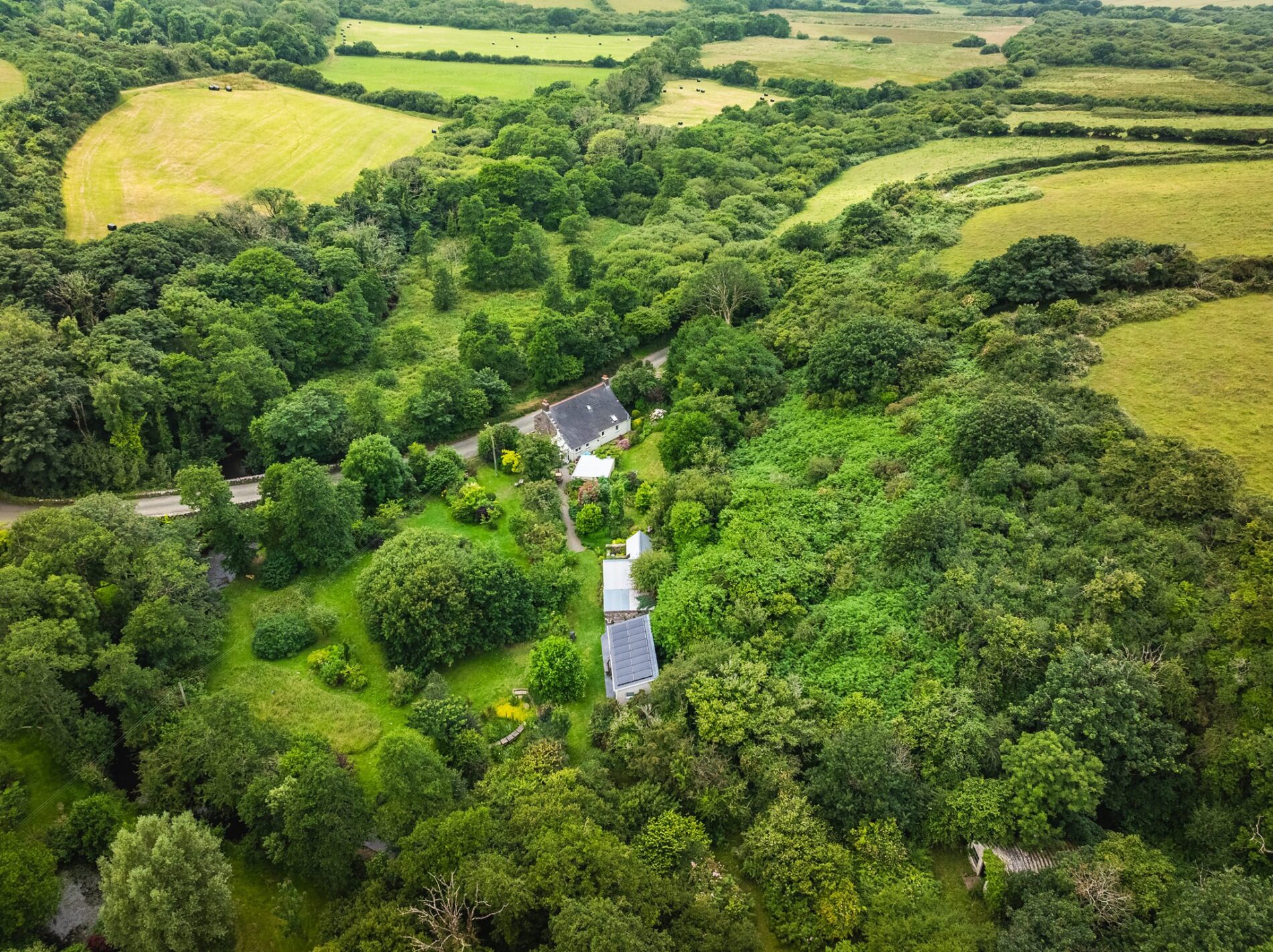 The land extends to both sides of the roadway and is mainly left to nature, offering a wonderful paradise for wildlife. Heading away from the main house you pass several stone outbuildings which have all been reroofed and made watertight by the current owners. These could provide potential to extend the main home or convert, subject to any relevant planning. Beyond these stone outbuildings you find the block built artist's studio. This space offers a bright main room with a kitchenette and shower room opening off it. This space could provide potential for conversion to residential use, subject to any relevant planning. The studio has a range of electricity generating solar panels on the roof which feed into battery storage with any excess being exported to the grid.