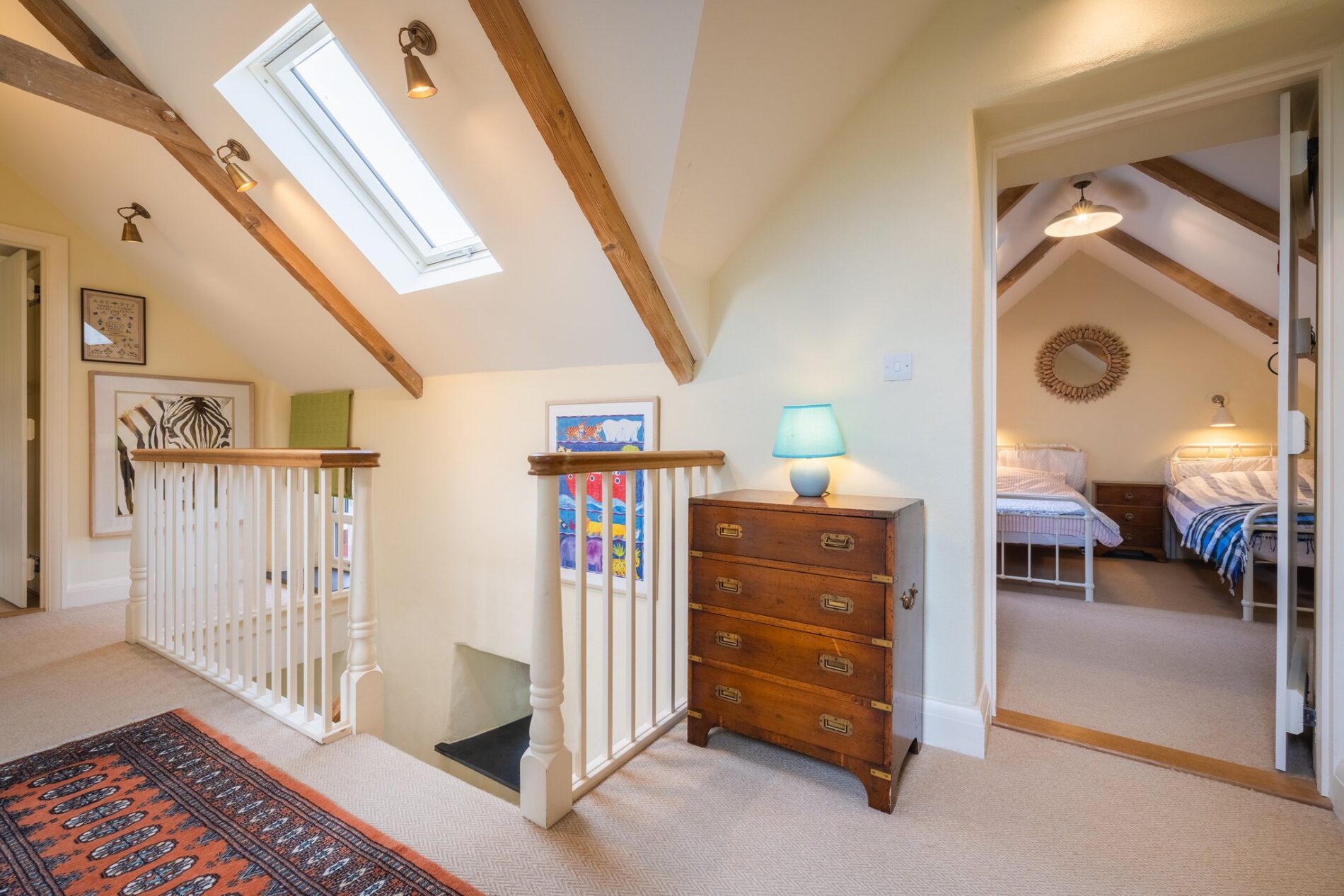 Climbing the first of the two staircases to the first floor you find the master bedroom with its ensuite shower room. This space is separate from the rest of the first floor and gives a wonderful private feel with features like the exposed A frame beams adding to the sense of occasion. The second staircase takes you up to the first floor landing which accesses the remaining three bedrooms (two doubles and one single) along with the well-finished family bathroom.