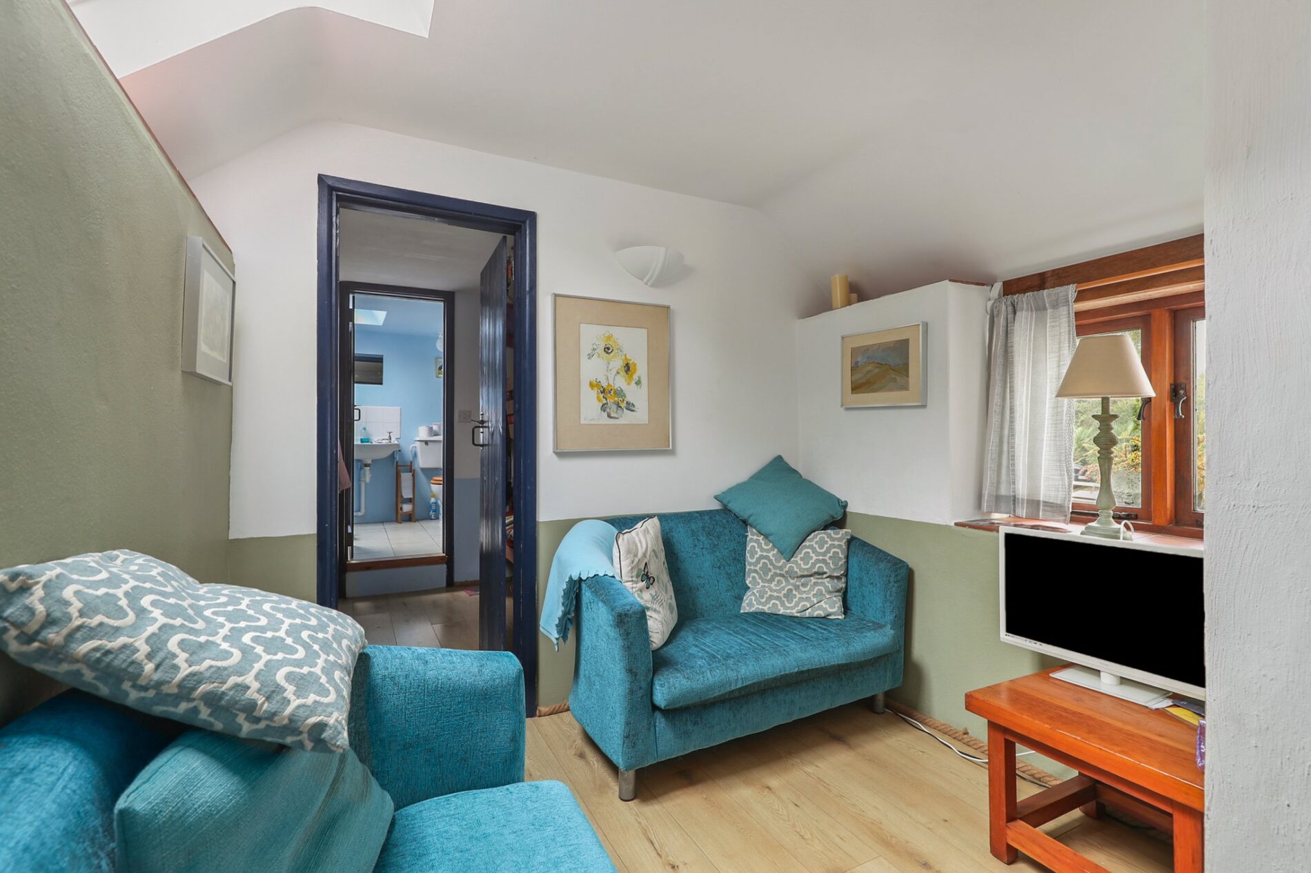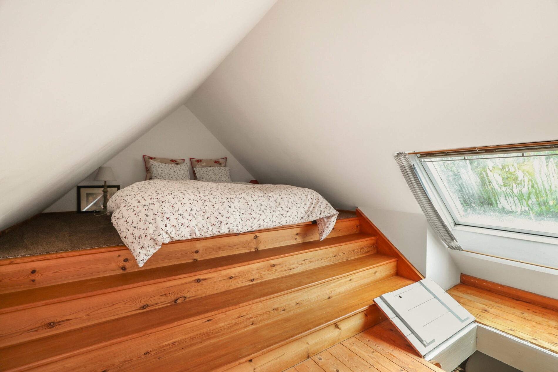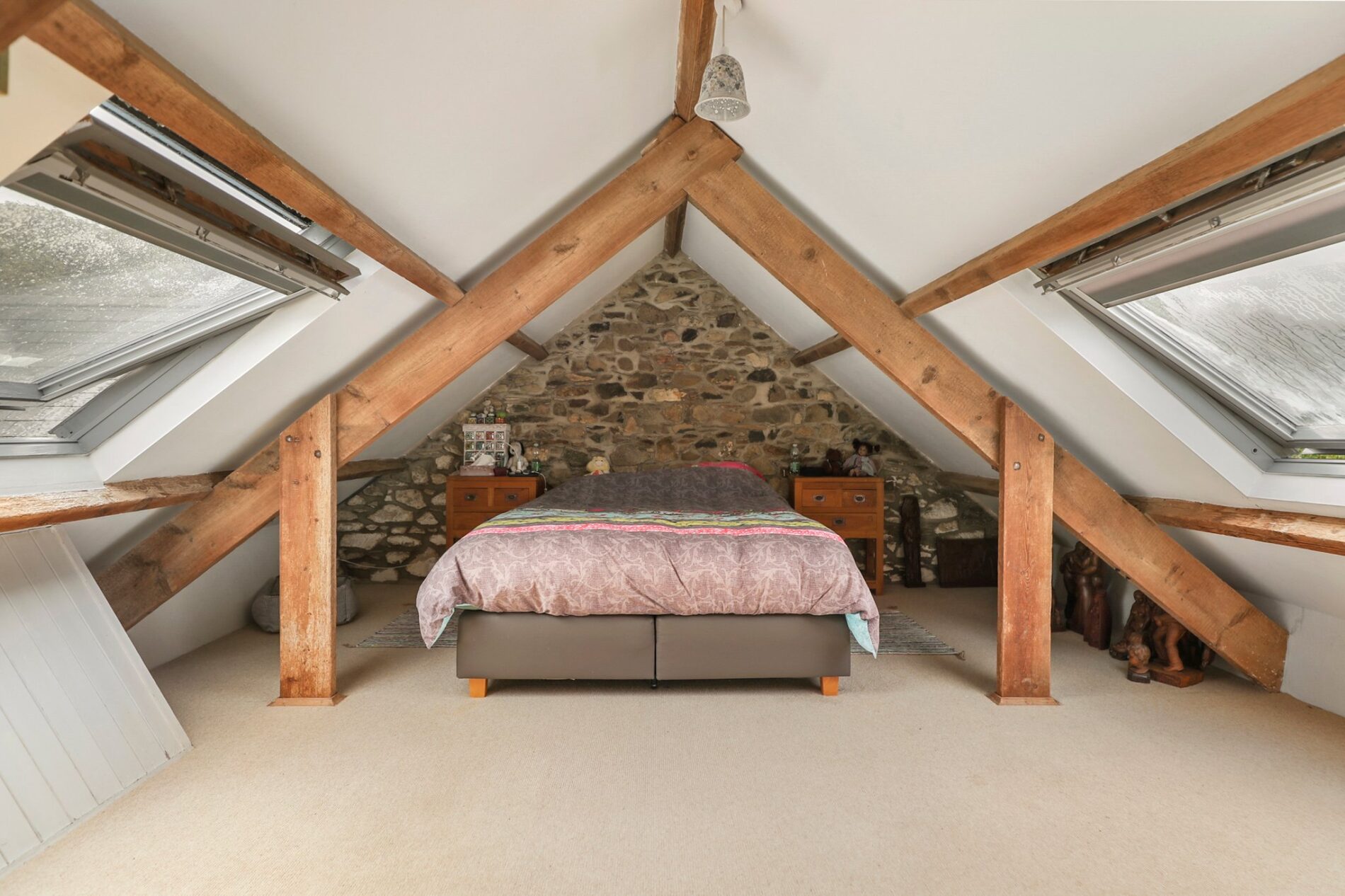 Situated above bedroom three, this room is currently arranged as additional bedroom accommodation. It features two rooflights and a raised sleeping platform built into the eaves.