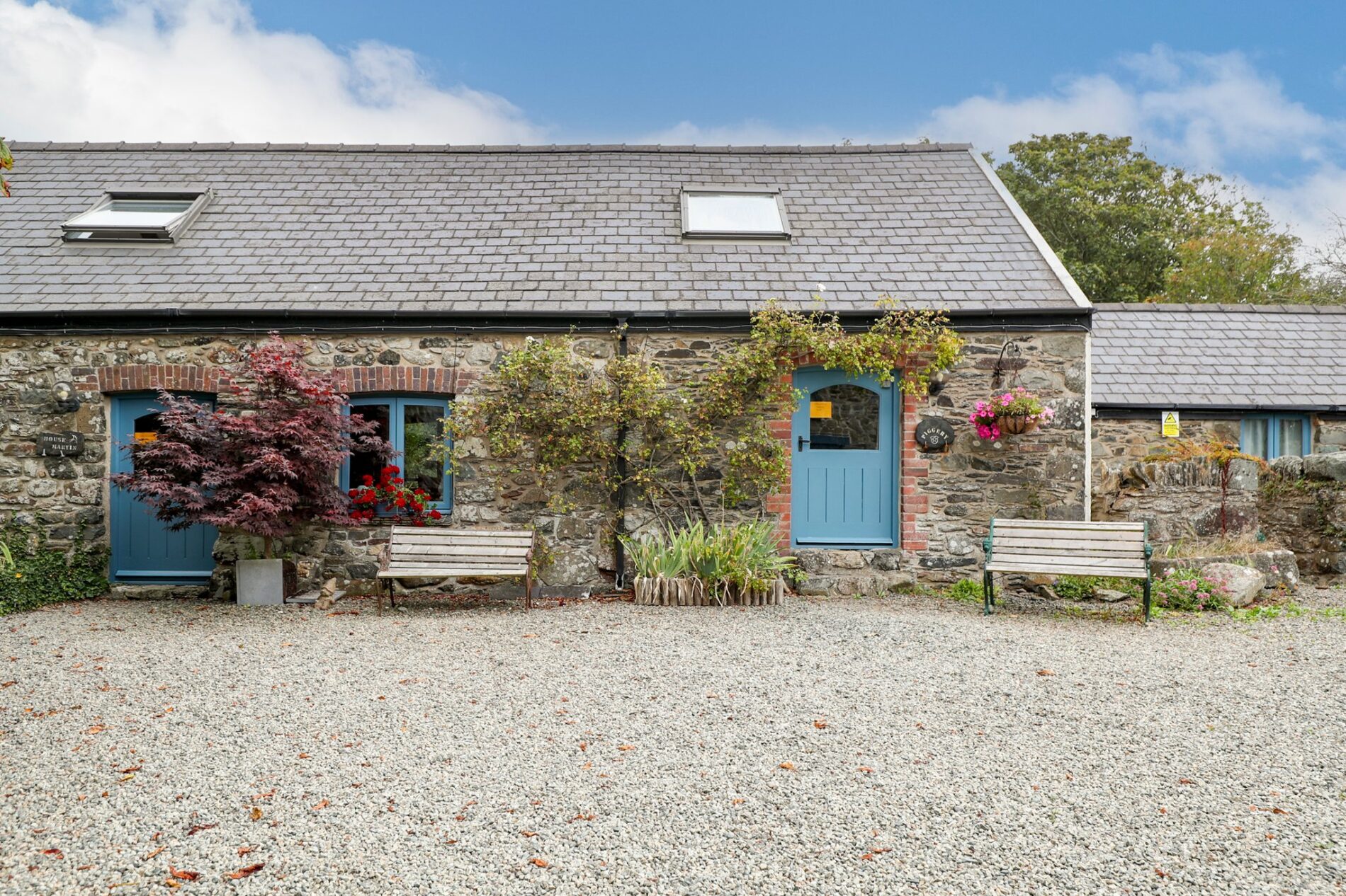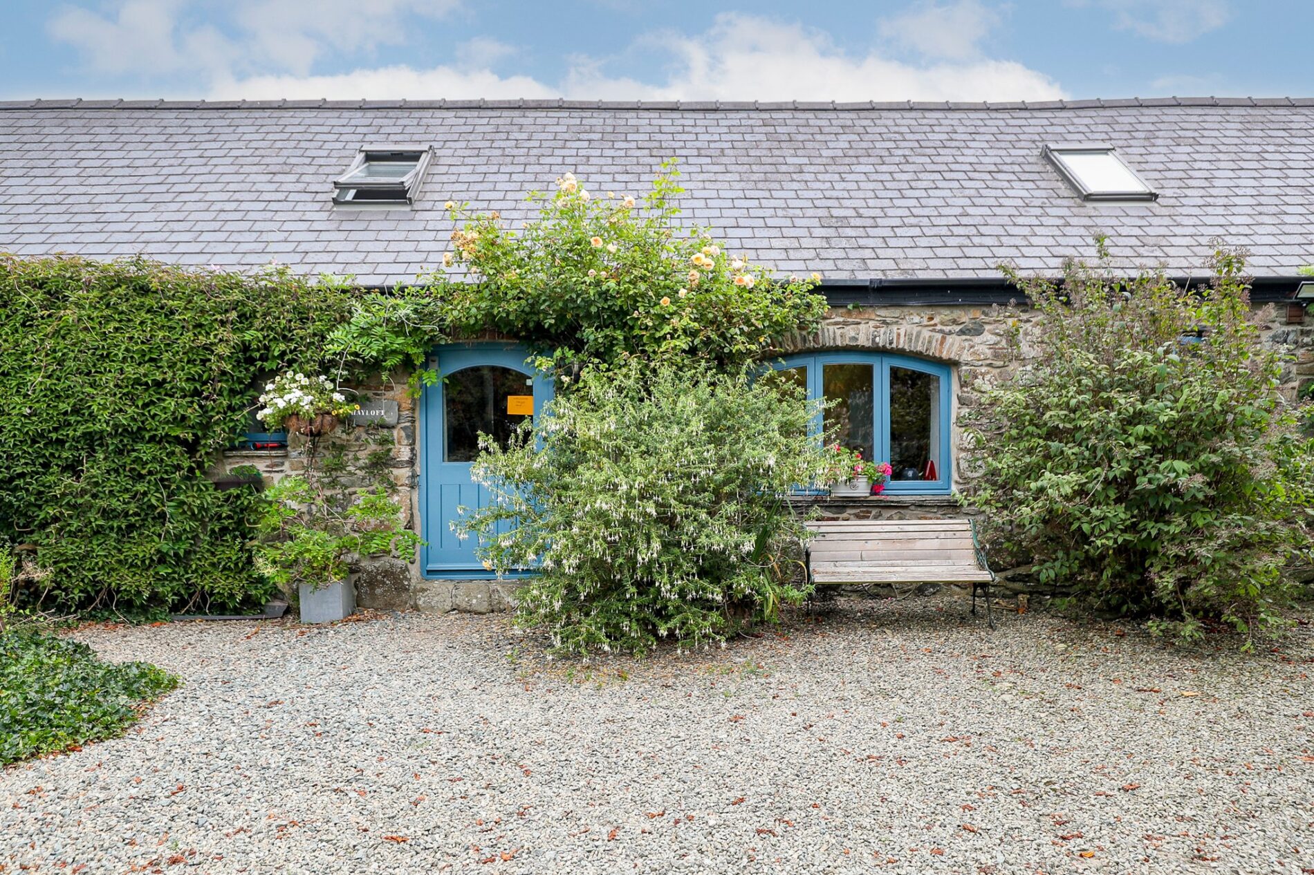 At the front of the properties lies a large gravel parking area with space for several cars, accommodating both owners and guests, as well as an area to sit and enjoy the sunshine. Additional parking for the owners is located directly in front of the main house. Each property has its own entrance at the front, along with access to the rear gardens.