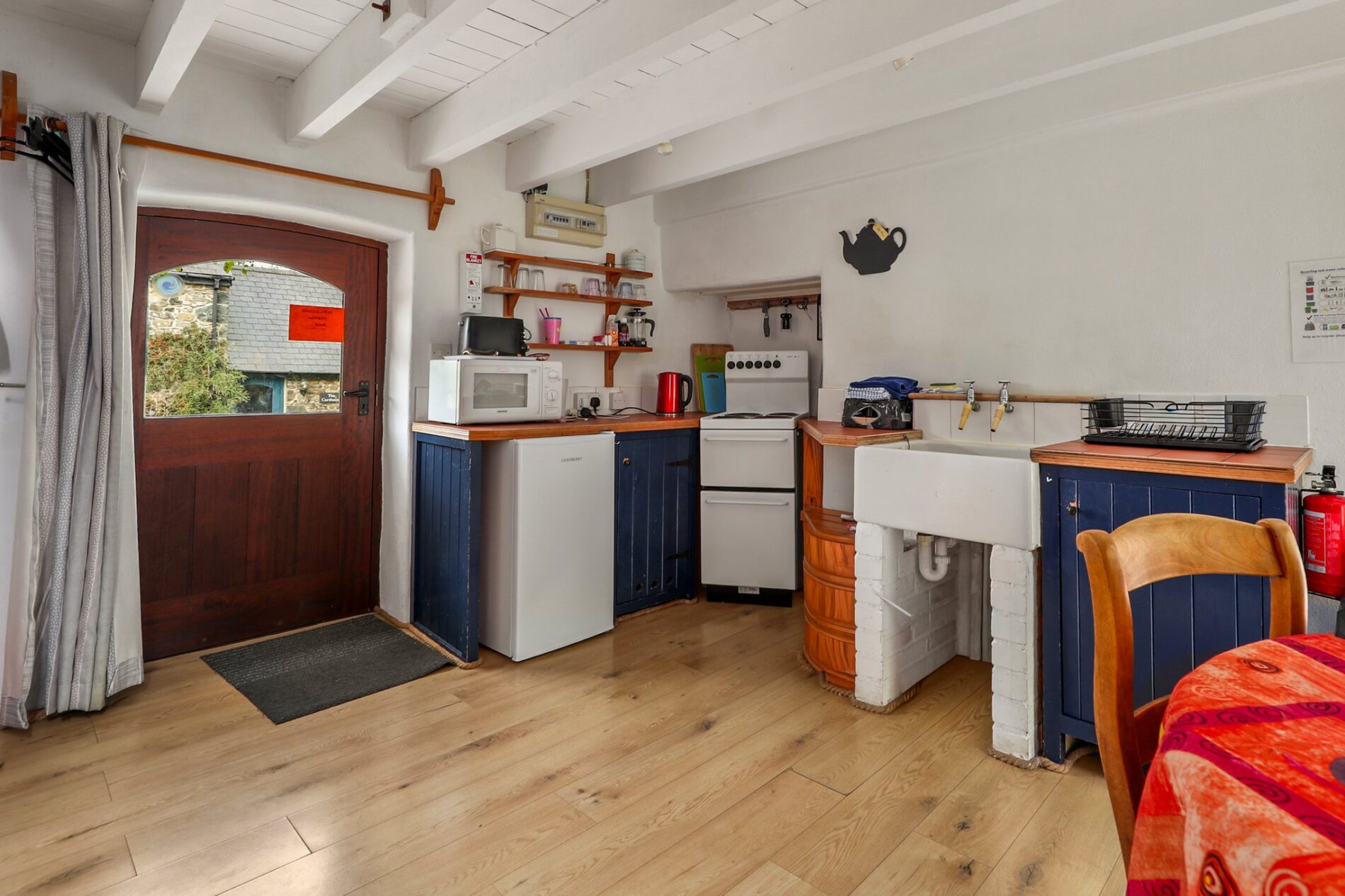 A highly practical space that supports the running of the letting cottages. The utility offers excellent storage along with space and plumbing for a washing machine and tumble dryer. The property’s oil-fired boiler is also located here. There is direct access to the rear gardens and an additional door leading into the adjoining shower room.