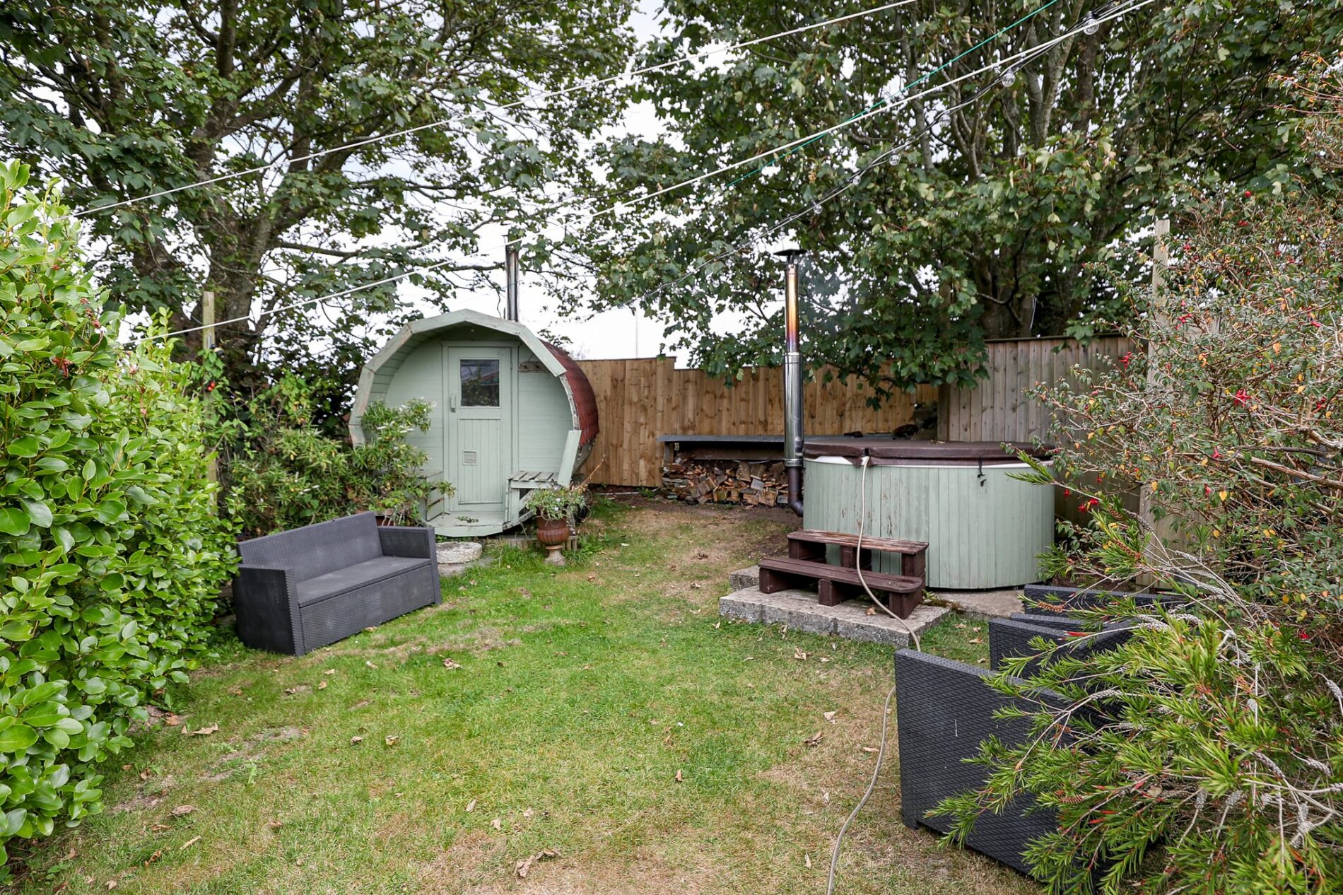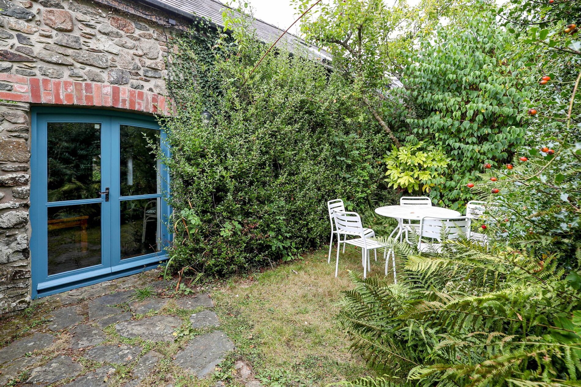 The three barns adjacent to the main house provide popular holiday accommodation for walkers and families. Hayloft is the largest, sleeping up to six guests; House Martin, next door, accommodates five; and The Piggery, at the end of the row, sleeps four. Each barn has its own private rear patio, with access to the communal gardens beyond. The gardens are a particularly attractive feature of The Long Barn, offering plenty of space for both owners and guests to enjoy. They also include a wood-fired hot tub, sauna, and a large wooden workshop with an adjoining greenhouse.