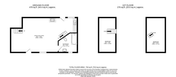 This barn conversion provides accommodation for up to five people, with a spacious open-plan living area on the ground floor. This level also includes the kitchen and a bathroom set in the corner of the room. Double doors at the rear open directly to the gardens. A staircase leads to the first floor, where you pass through one bedroom to reach the second, currently arranged as family accommodation for up to five people.
