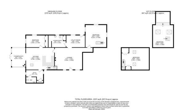 From the lounge, a door leads to a large utility room with access to the rear gardens, and beyond this, a generous shower room. Completing the main accommodation is a versatile ground-floor reception room, which could also serve as a bedroom. A staircase from this room leads to another first-floor space, currently used as a bedroom.