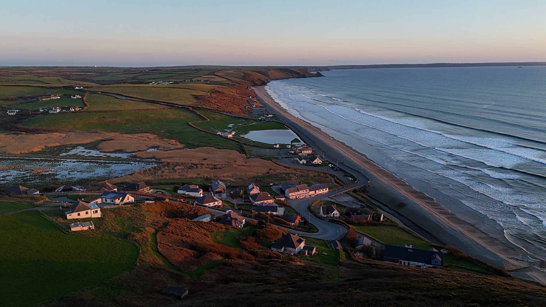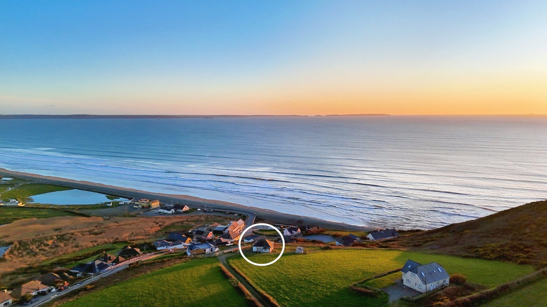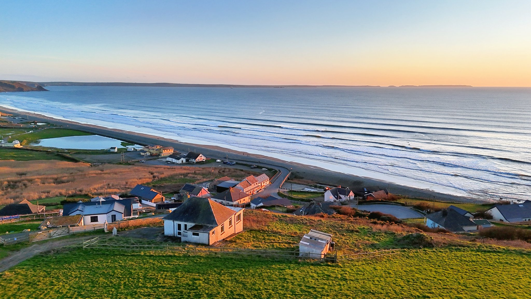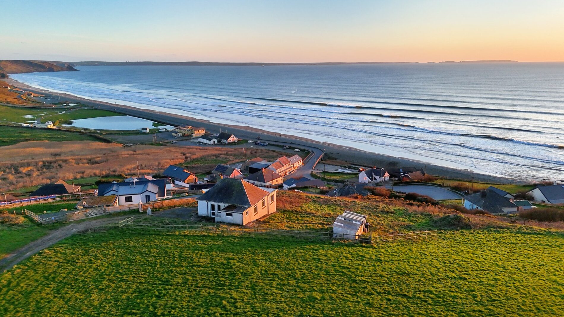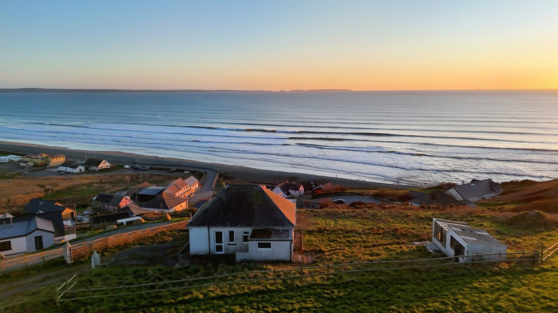 Rarely does an opportunity of this calibre present itself in such a dramatic Pembrokeshire setting. Elevated above the sweeping sands of Newgale, the plot commands a cinematic vista across St Brides Bay: rolling surf, wide skies, and the mesmerising play of light from dawn to dusk. It’s the kind of location that changes with each tide and season, rewarding its owner with an ever-evolving backdrop of sea and horizon.
