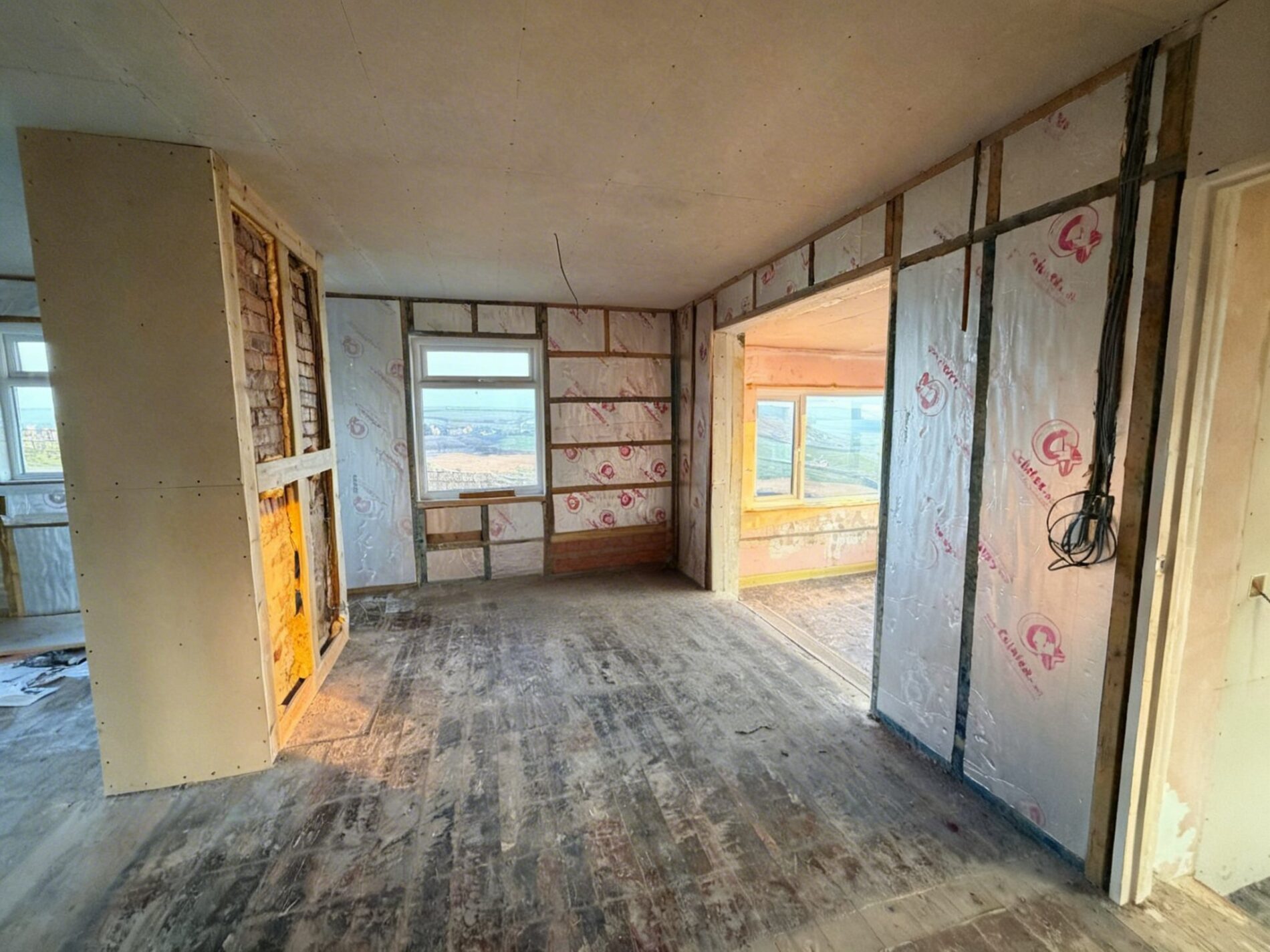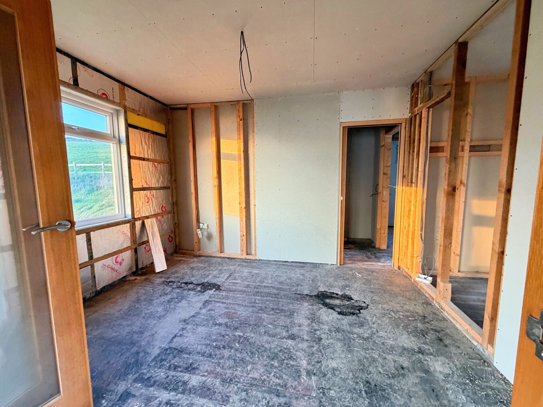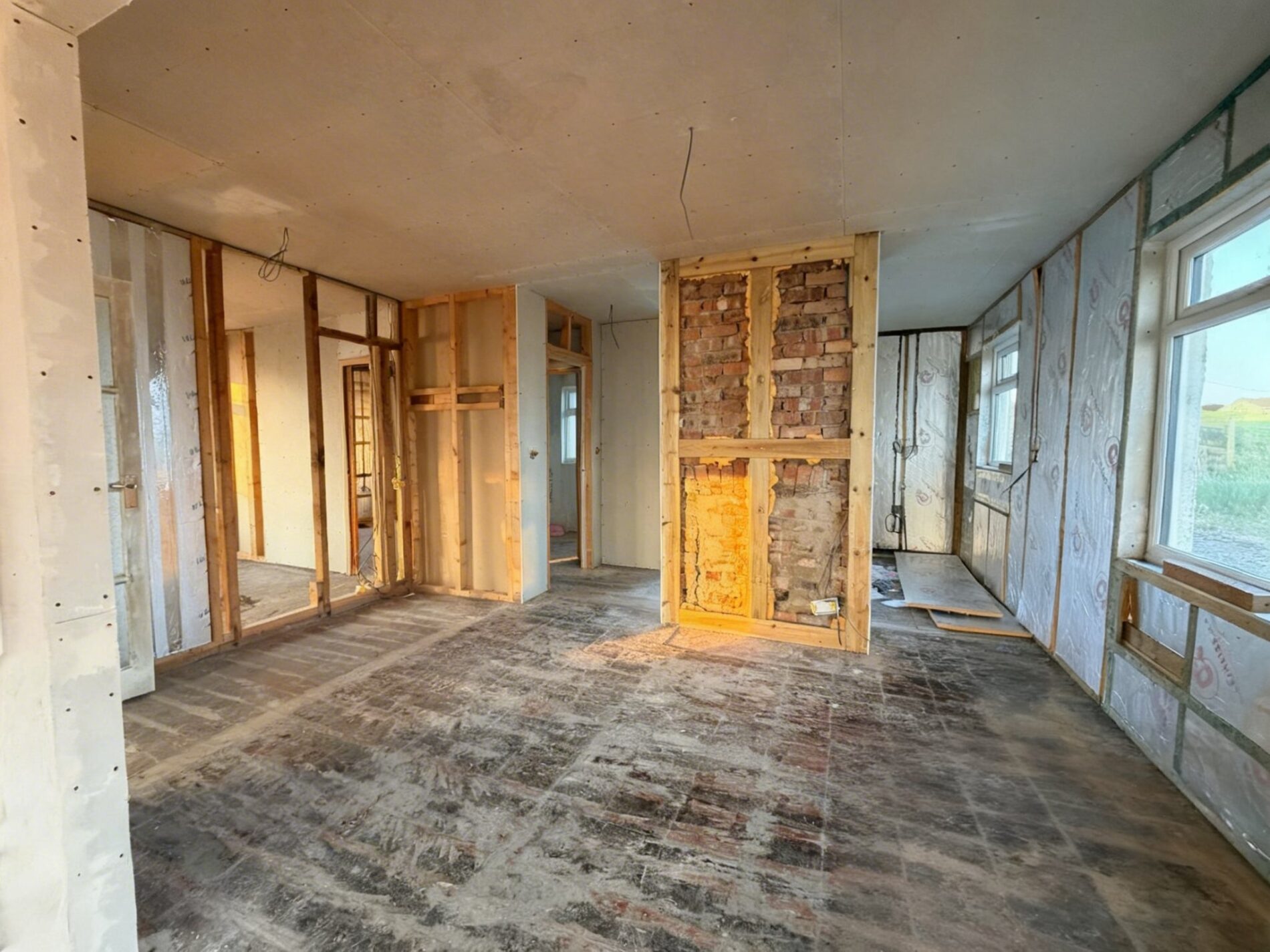 Inside, the building has been pared back to its shell and wired to first fix, presenting a clean slate ready for finishing touches. The current layout is simple: five flexible rooms with provision for a bathroom, plus a rear store that lends itself perfectly to a practical utility area or a dedicated space for beach kit. Outside, the principal garden lies to the property’s flank, opening to uninterrupted sea-and-sky vistas. A solid block outbuilding and a greenhouse sit within this area and could be adapted—think garden studio or laid‑back summer space. Parking is positioned to the side and reached via a private lane.