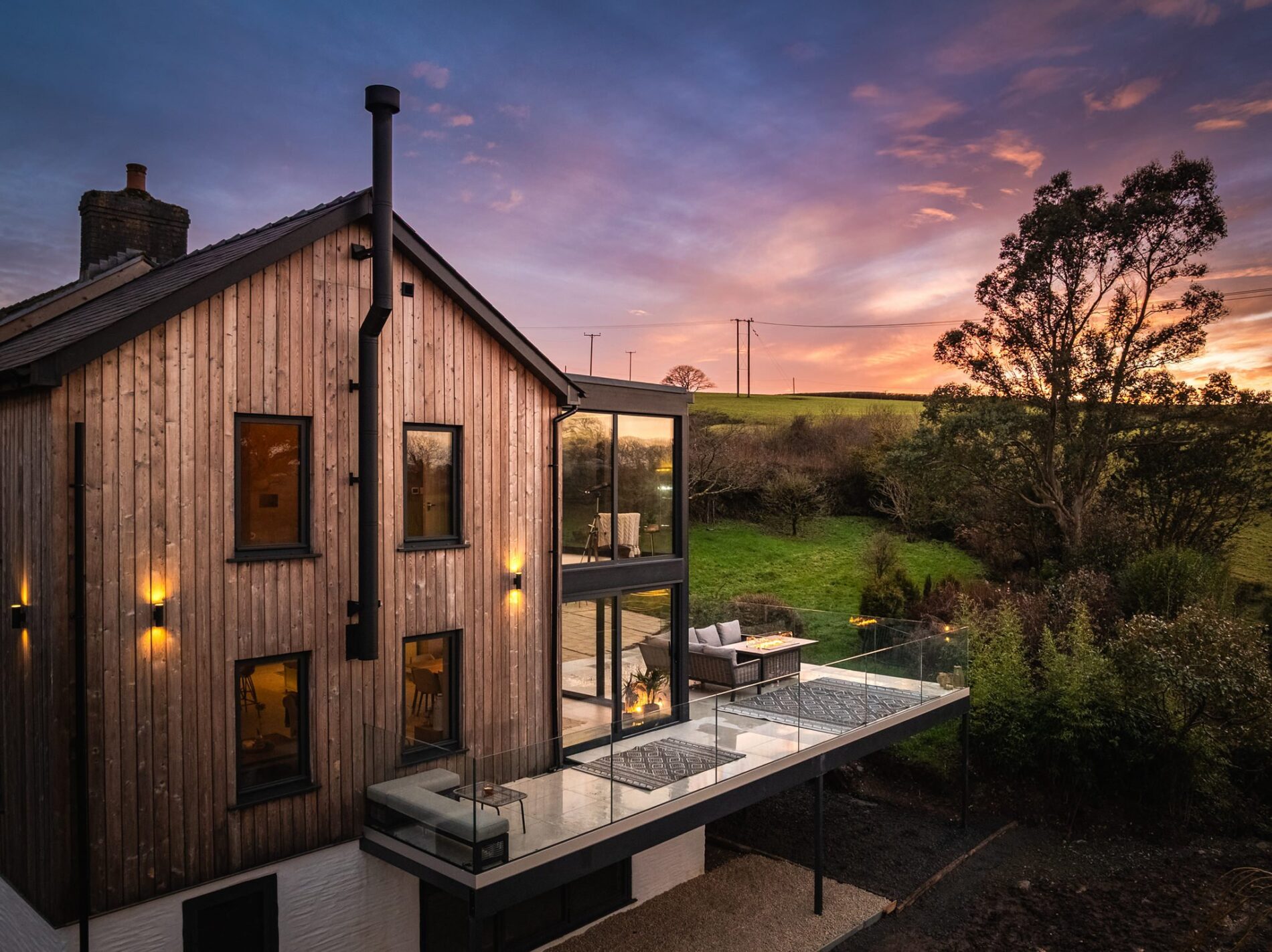 Halldown Farm is a remarkable property that offers a seamless fusion of a two-hundred-year-old farmhouse, with a stunning modern extension. This superb home provides four double bedrooms and four bathrooms arranged over two levels. The focal point of the property is undoubtedly the jaw-dropping main living area, which extends out onto the wrap-around terrace with a captivating backdrop of rolling fields. Halldown Farm enjoys total rural privacy and sits within approximately 1.38 acres of grounds.