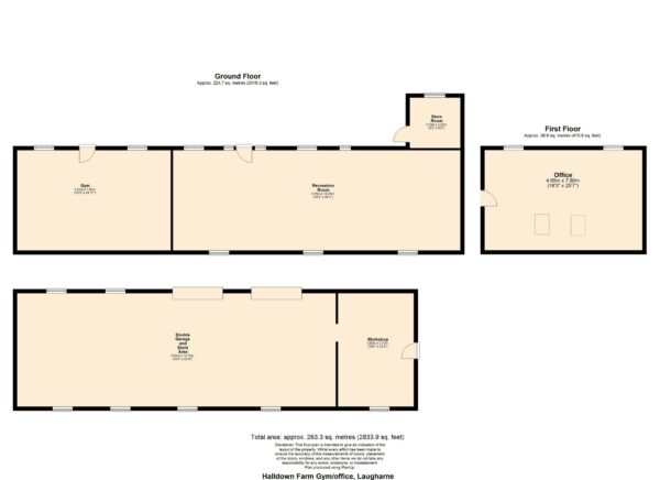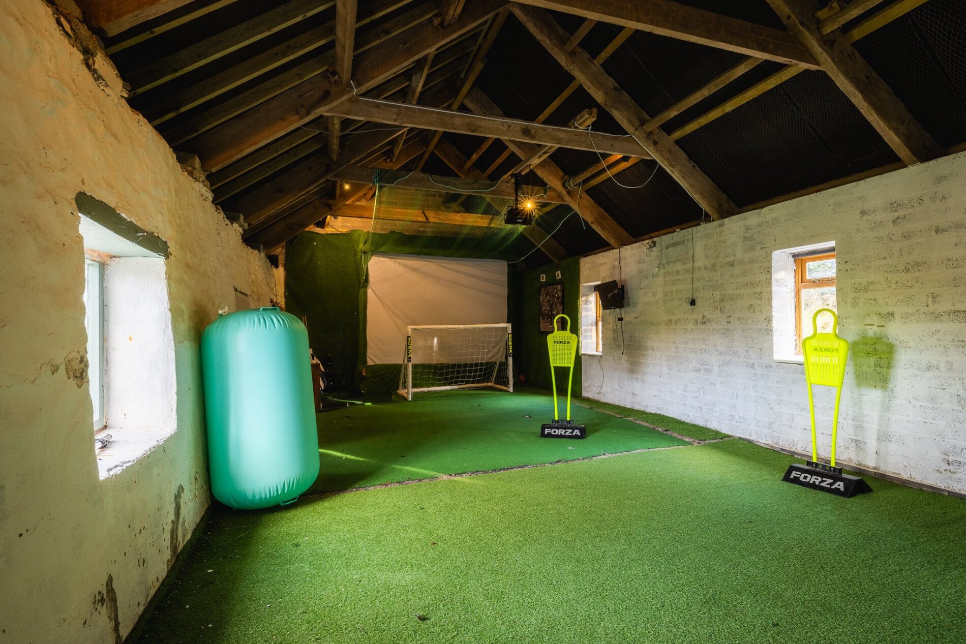 This charming range of original stone outbuildings comprises a two-storey section and a long single-level barn. Power is connected, with a cold-water supply also in place. The ground floor of the first section is currently used as a home gym, while the insulated upper level serves as a home office accessed via an external staircase. The long barn is presently used for storage and as an indoor play area.
