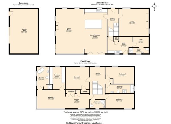 - Four double bedrooms and four bathrooms over two floors