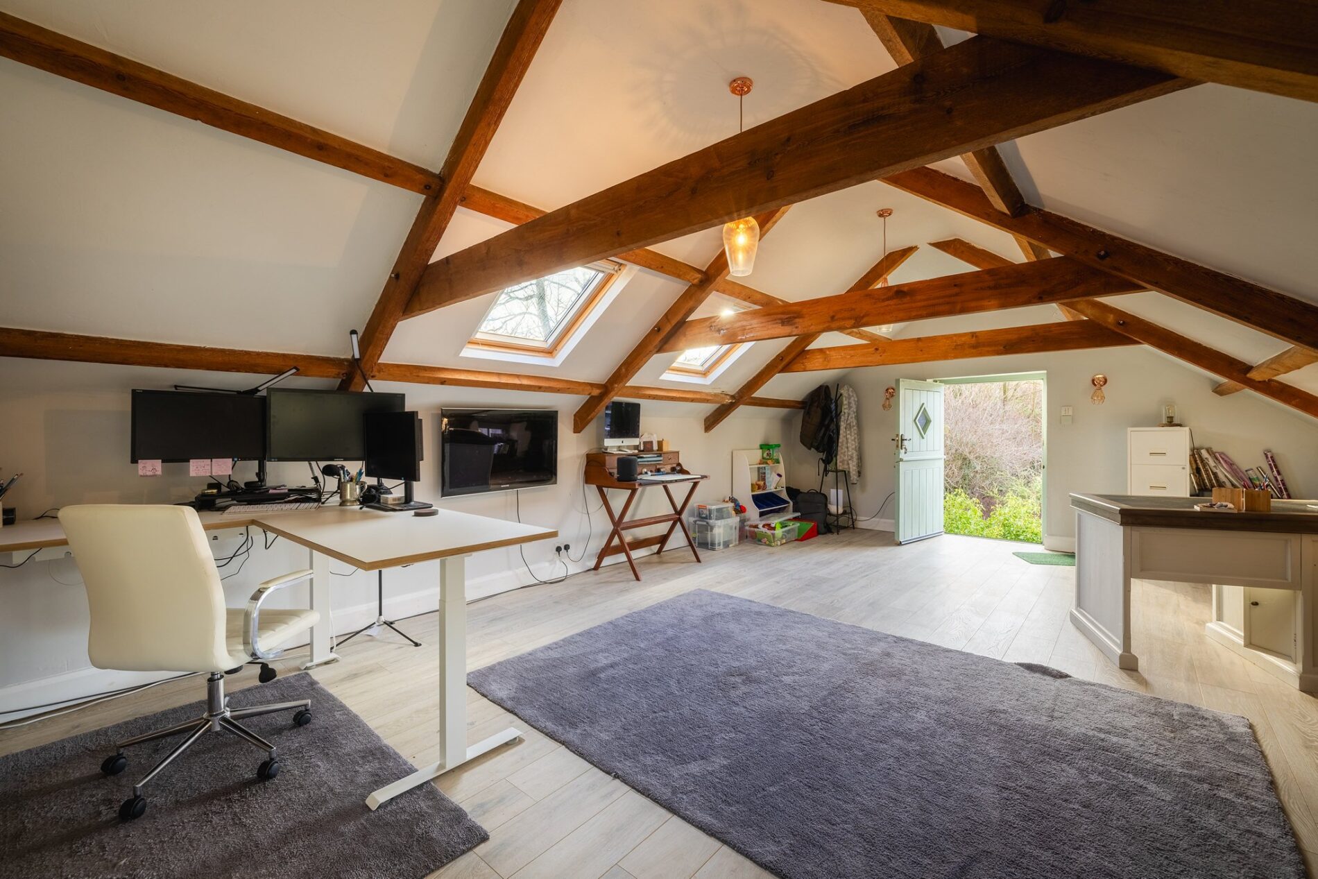 Created beneath the new extension, this versatile space offers numerous possibilities. With a door and full-width bi-fold doors opening onto the garden, it is large enough to form self-contained accommodation if required, or to serve as a home studio or office. The space is fully tanked, dry, and well-lit with natural light.