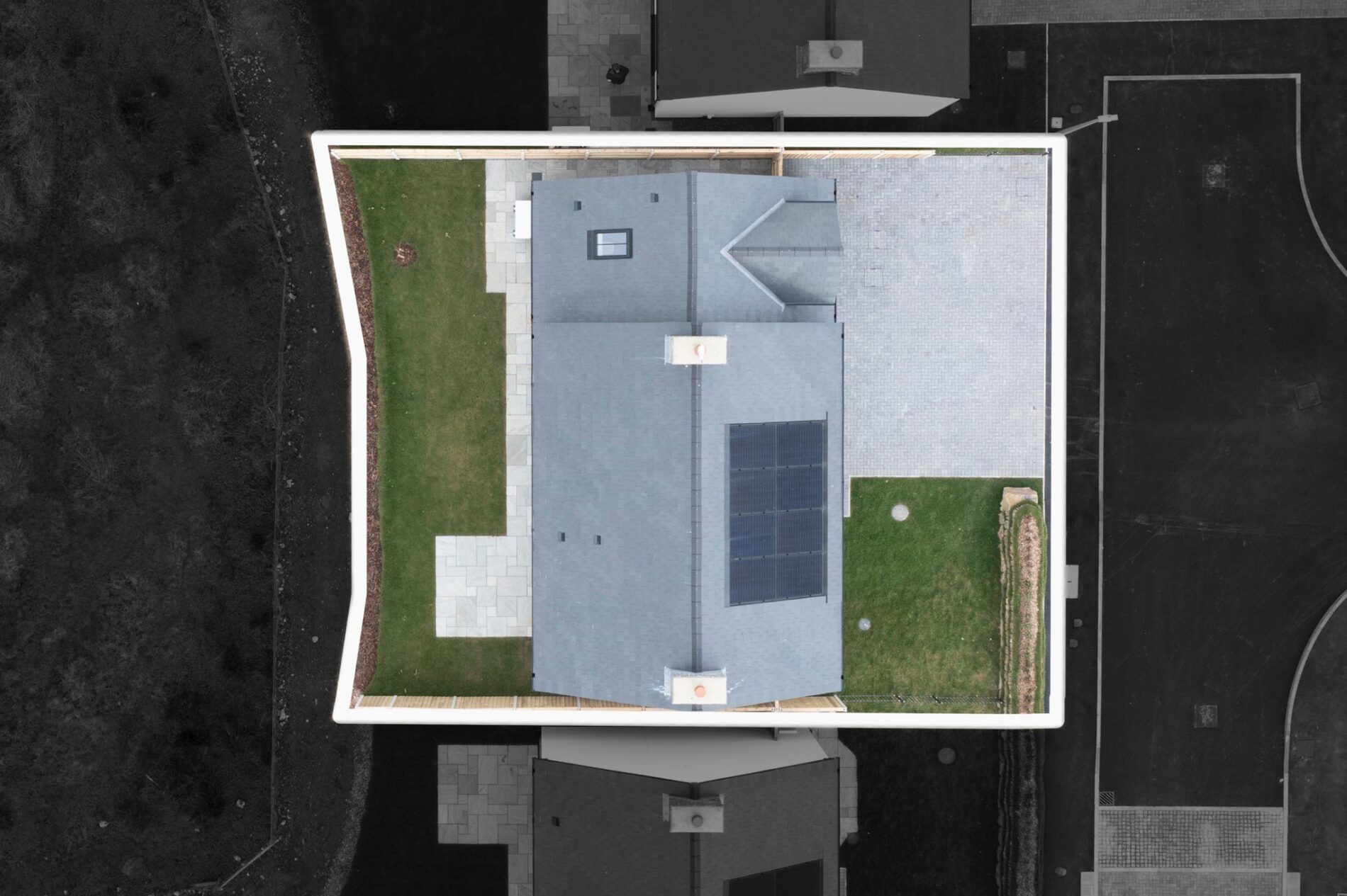 - Natural slate roofing with integrated solar panels