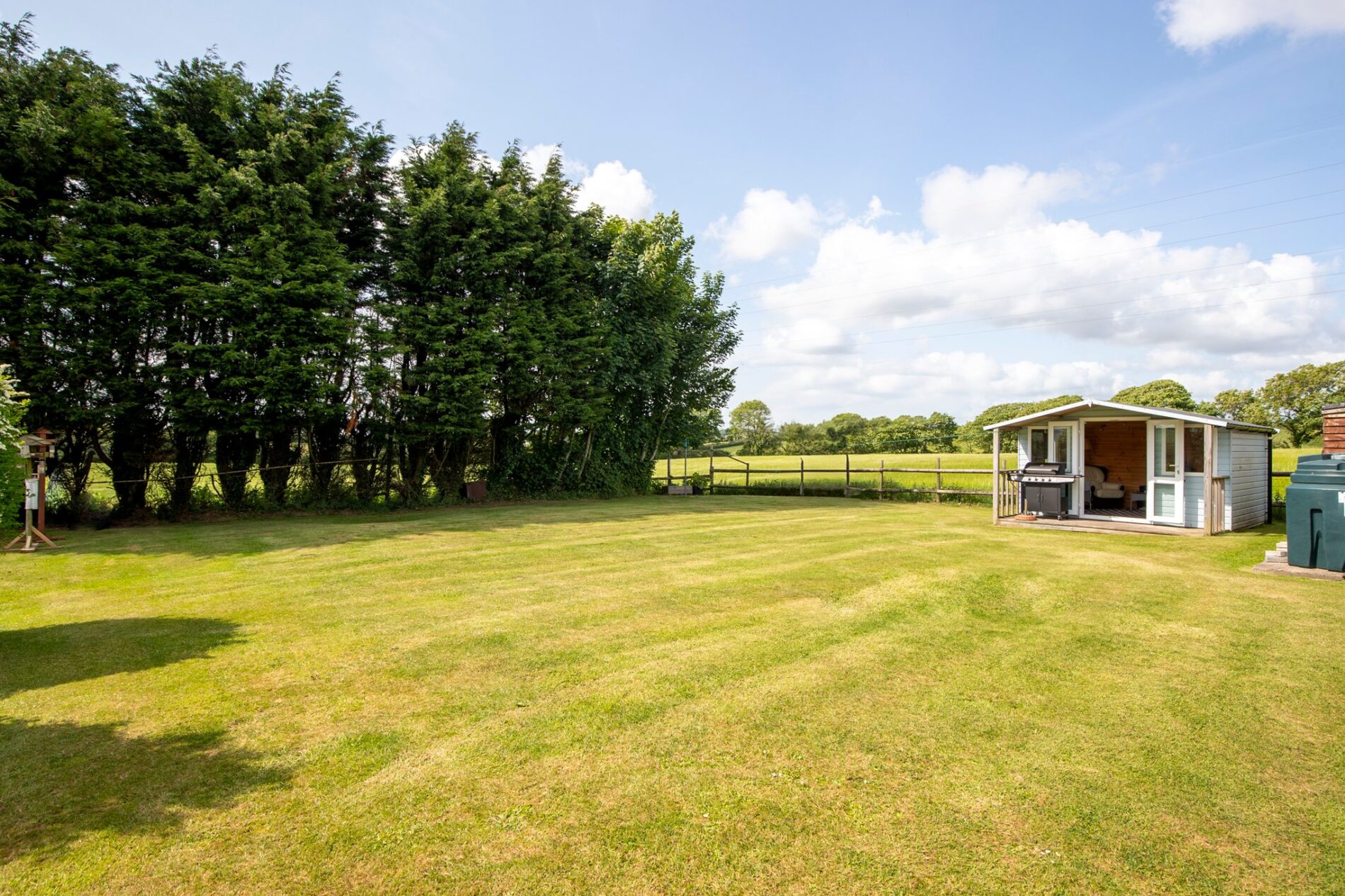 - Detached garage with room above and a summer house with power, both offering excellent potential for home offices, studios, or hobby spaces.