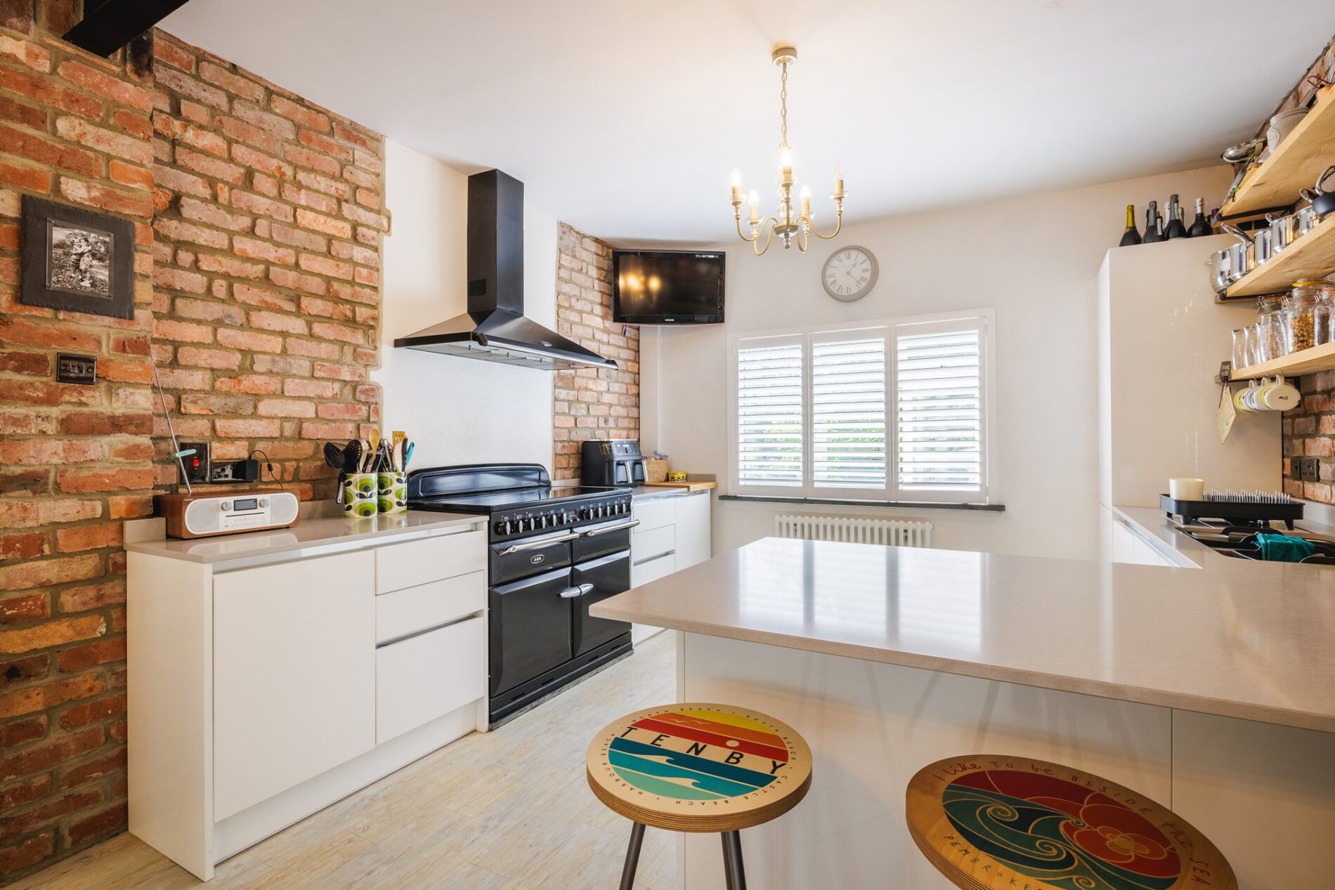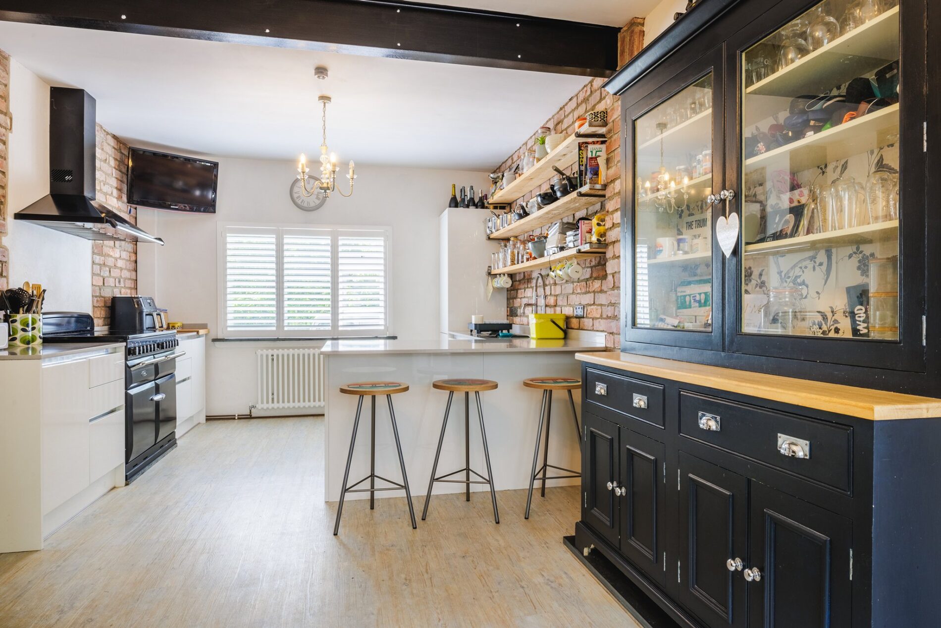 The kitchen is a lovely space that has been recently upgraded by the current owners. The feature brickwork combines with the clean modern units to create a great space for both a cook and their guests. There is a window to the front and rear of the room along with an external door to the side. The kitchen offers a double sink, dishwasher, gas Aga range and space for an American style fridge freezer. There is also a storage/utility cupboard to the rear.