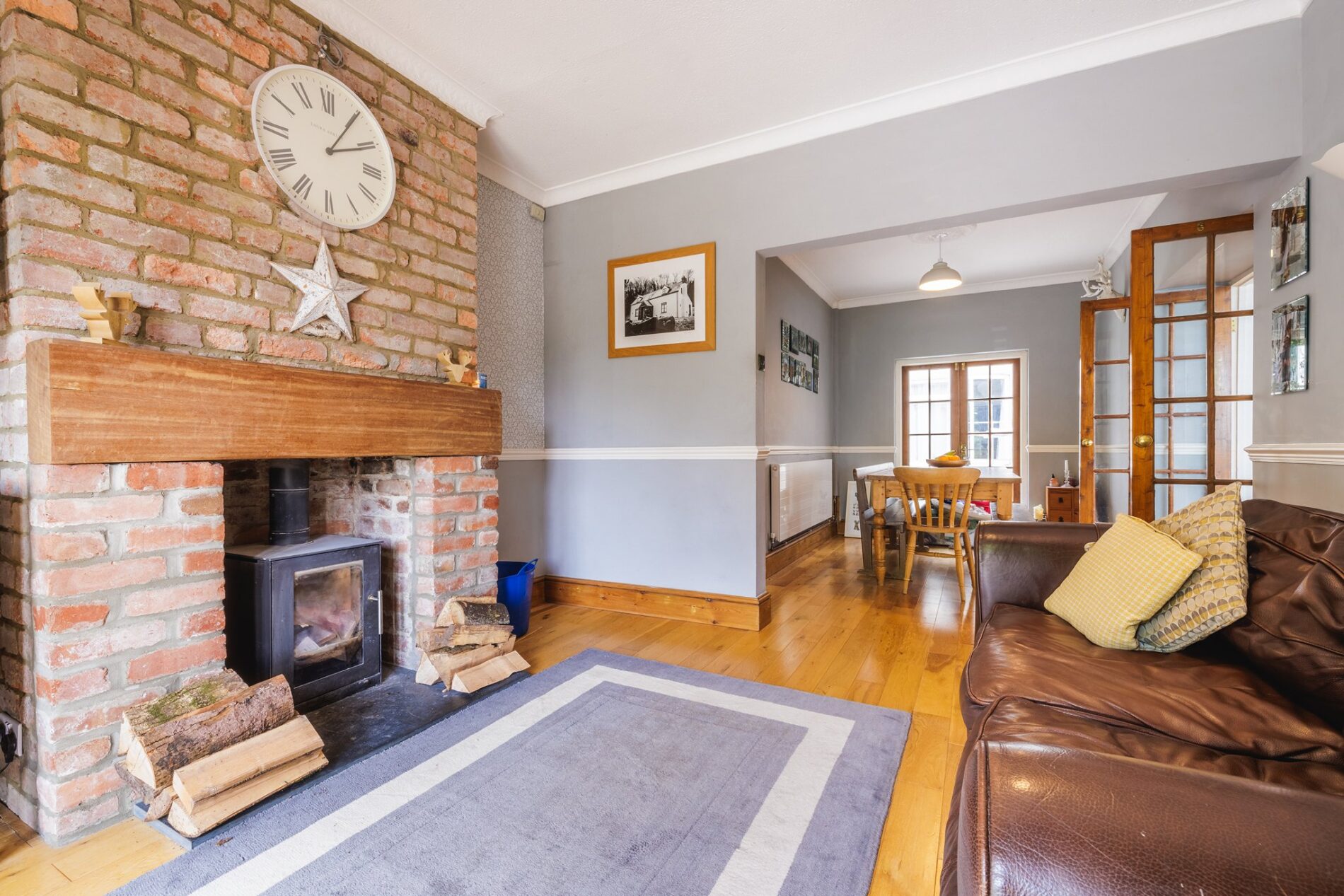 There are several access points into the property with a set of double doors taking you into the central sitting/dining room. This lovely space is a wonderful area to unwind at the end of the day with a delightful focal point of a woodburning stove set in a fireplace. A door in the rear wall of the dining area leads into the sunroom, with a door to the left opening to the kitchen and a door to the right leading through to the living room. The living room is a bright and airy room with excellent space for a range of sofas and chairs and enjoys a dual aspect to the front and side. To the rear of the living room a door opens to the rear hall/ study area. This flexible space also opens into the sunroom and has a door to the ground floor cloakroom. At the opposite end of the ground floor, you find the recently renovated kitchen which offers a great family space and includes a breakfast bar for informal dining. Between the kitchen and the sitting / dining room you find a small hallway which contains the staircase up to the first floor.