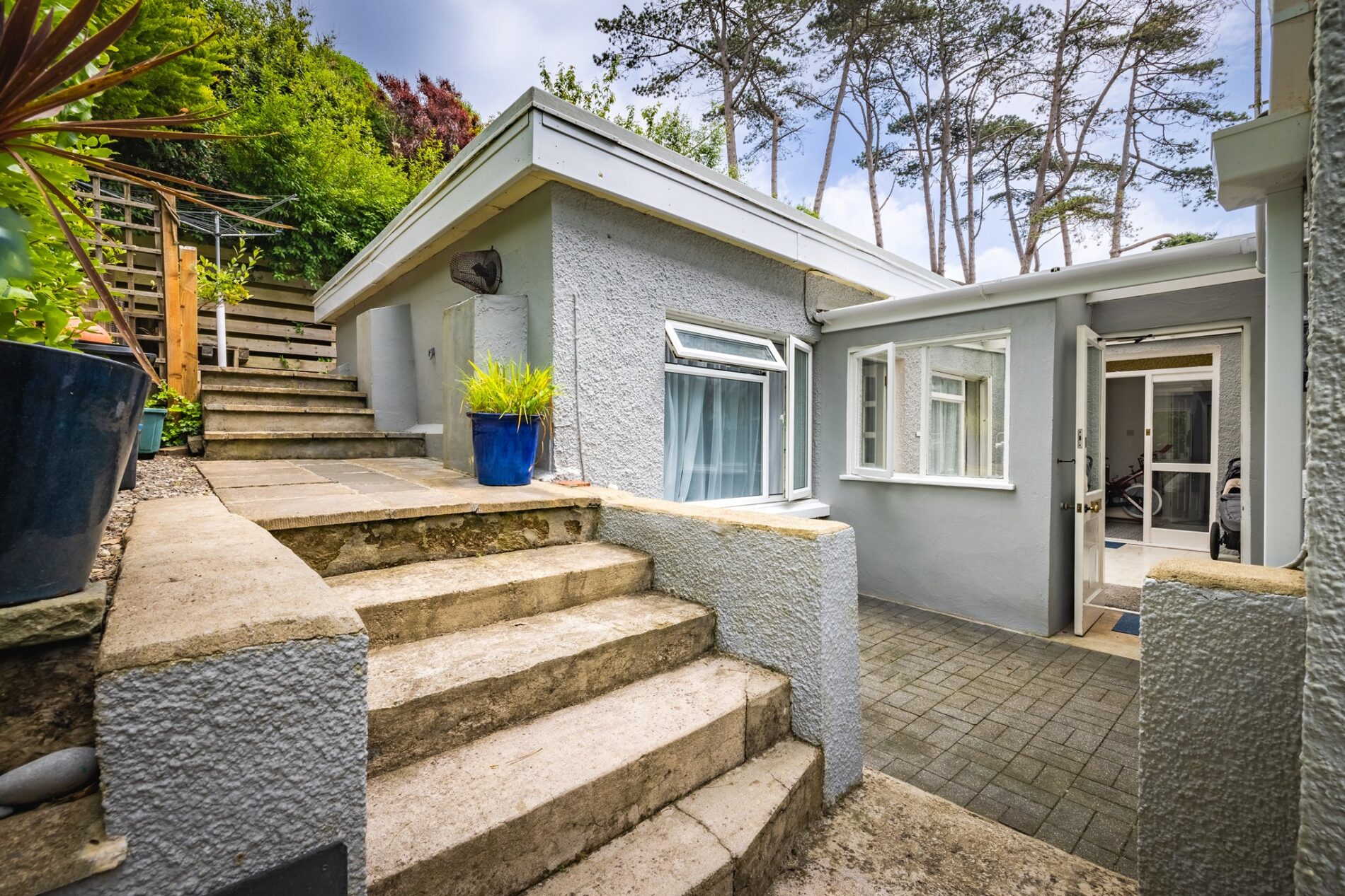 A patio area runs along the front of the home and takes you around the left hand side of the property. Here you can access the main house via a side door into the kitchen and the annex to the rear of the house. Continuing up a short flight of steps you arrive at a raised seating area with a strip of grass running along the rear of the annex.