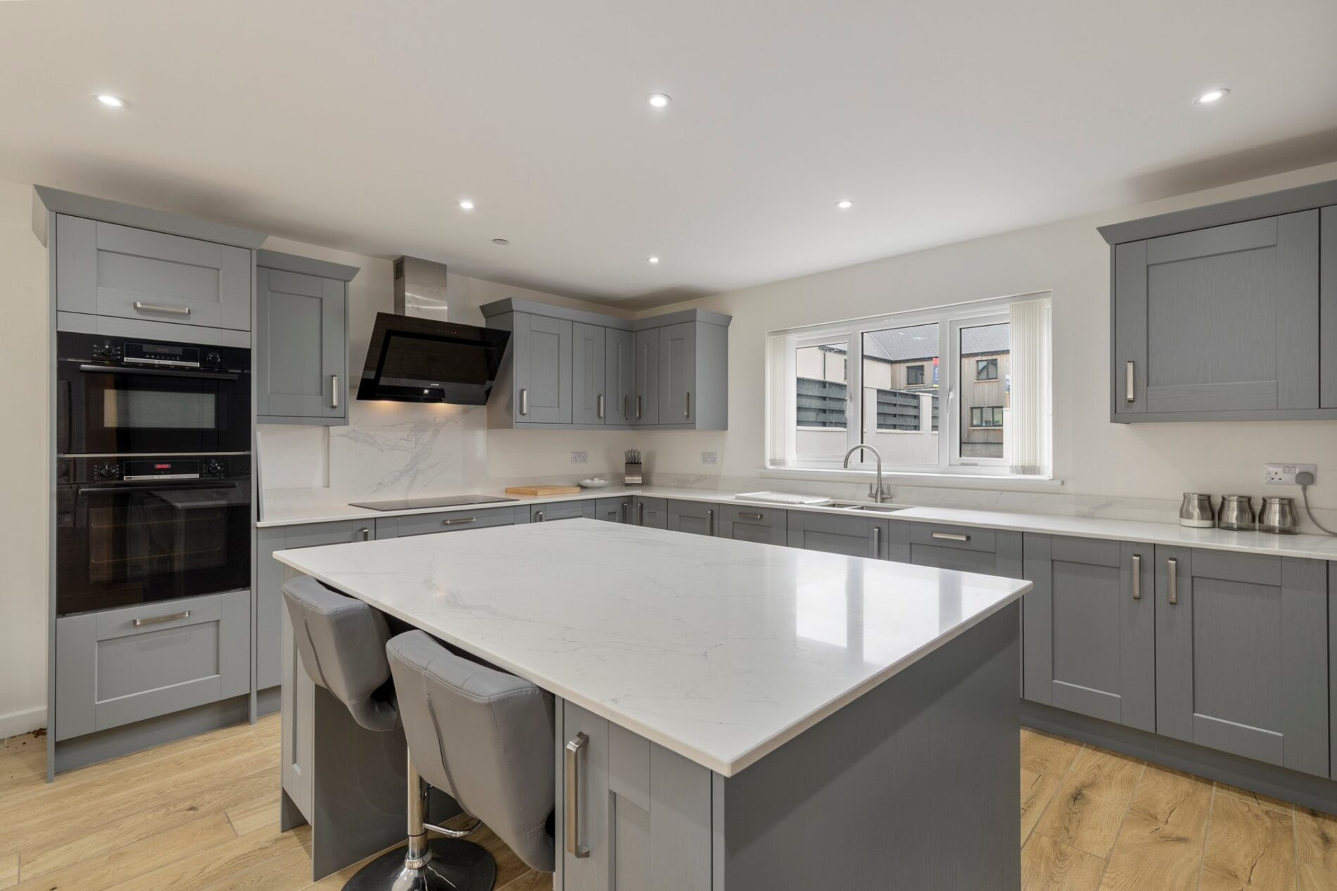 The internal accommodation is both extensive and versatile, arranged to suit the demands of modern family living. The property offers four generously proportioned bedrooms, supported by four modern bathrooms, ensuring comfort and practicality for larger households or visiting guests. In addition, there are three stylish reception rooms, providing flexible spaces that can be used for formal entertaining, relaxed family living, home working or playrooms as required. At the heart of the home lies a superb open-plan living area, designed to encourage natural light and flow throughout the ground floor, creating a welcoming environment that works equally well for everyday life and social occasions. Throughout the property, the standard of finish is evident, with upgrades carried out and carpets installed just one year ago, resulting in a home that feels fresh, contemporary and entirely move-in ready.